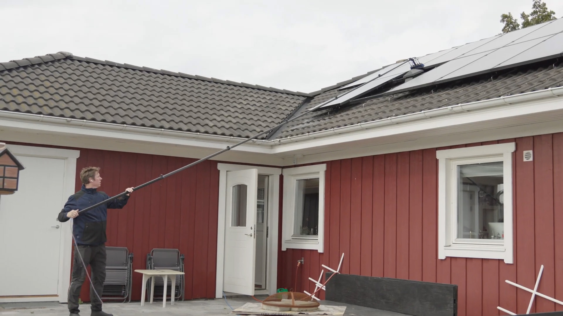 Sikker vask af solceller på tag