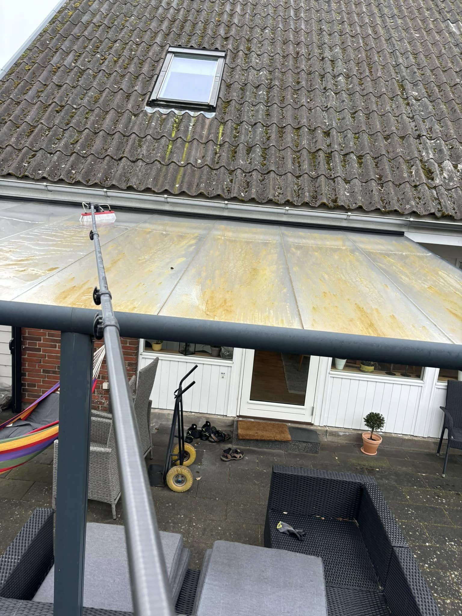 Vi bruger et effektivt, miljøgodkendt algemiddel for at fjerne alger, mos og lav fra dit tag. Vores behandling sikrer, at væksterne forsvinder hurtigt og effektivt.